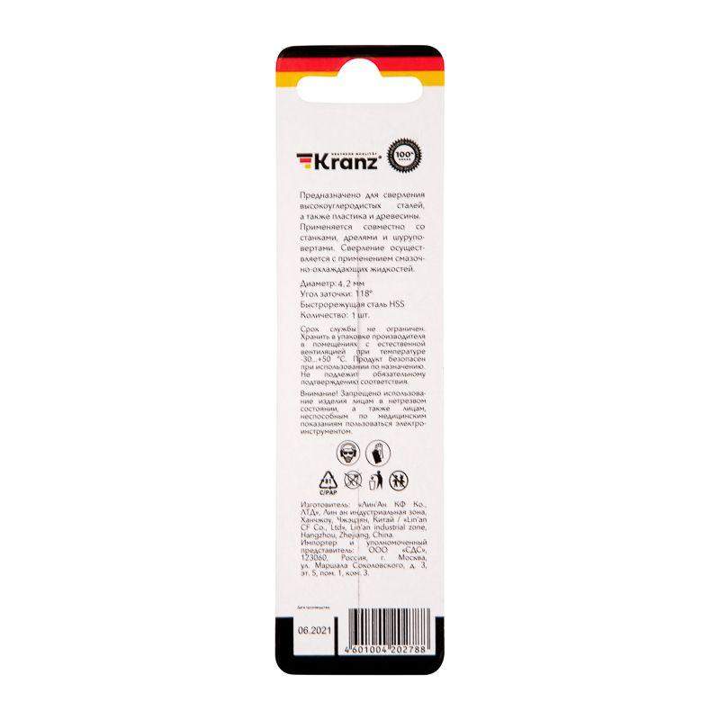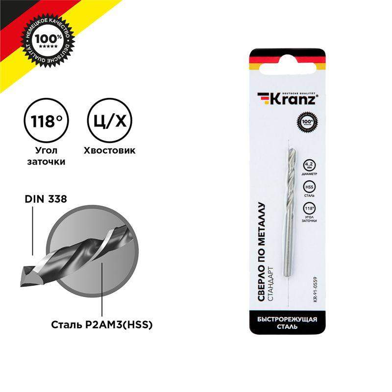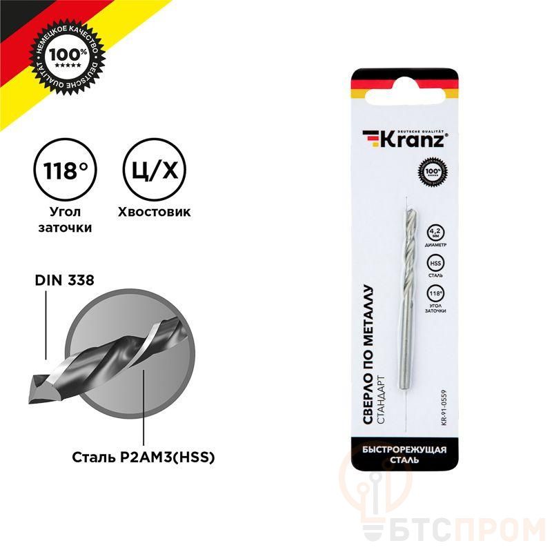 Сверло по металлу 4.2х75х43мм HSS DIN 338 Kranz KR-91-0559 фото в каталоге от BTSprom.by