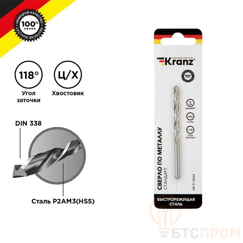 Сверло по металлу 5.0мм HSS DIN 338 (уп.1шт) Kranz KR-91-0564 фото в каталоге от BTSprom.by