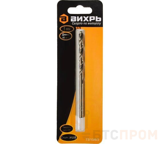 Сверло по металлу 5мм P6M5 (блист.1шт) Вихрь 73/10/6/3 фото в каталоге от BTSprom.by