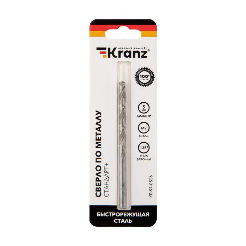 Сверло по металлу 5мм "Стандарт+" (P6M5 M-2) DIN 338 (блист.1шт) Kranz KR-91-0526