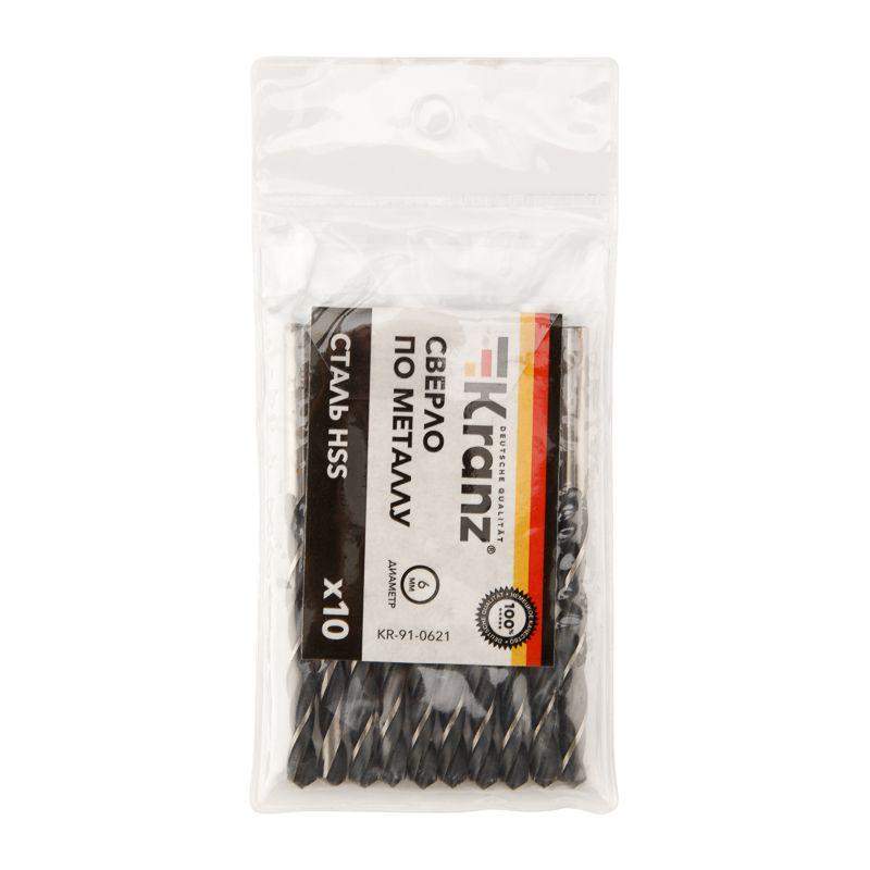 Сверло по металлу 6.0мм HSS DIN 338 (уп.10шт) Kranz KR-91-0621 фото в каталоге от BTSprom.by