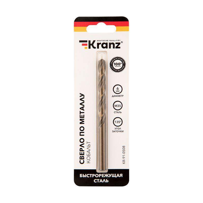 –Сверло по металлу 6мм "Кобальт" (сталь HSS-Co 5% M35 P6M5K5) DIN 338 (блист.1шт) Kranz KR-91-0508