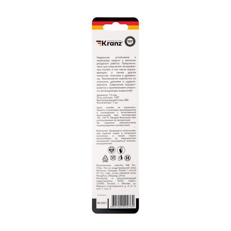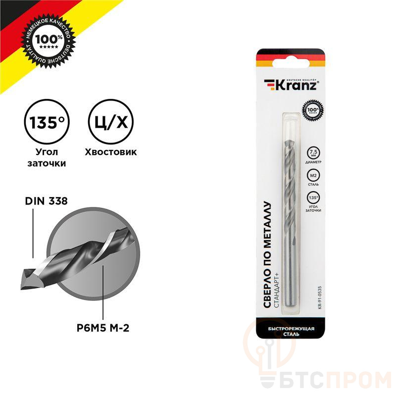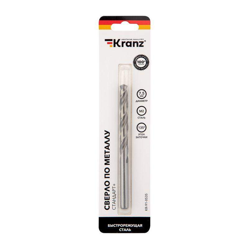 Сверло по металлу KRANZ изготовлено по стандарту DIN 338 и используется для сверления отверстий в таких материалах, как сталь, чугун, нержавеющая сталь, цветные металлы и пластик. Применяется совместно с дрелями, шуруповертами и станками с цилиндрическим типом крепления. Изделие выполнено из качественной стали М2 (Р6М5), что обеспечивает высокую производительность, а также препятствует быстрому перегреву во время использования. Режущая часть инструмента заточена под углом 135 градусов, что способствует более эффективному проникновению в материал, уменьшая износ сверла. Благодяря вышлифованному профилю сверло сохраняет точное положение во время сверления, благодаря чему создаваемые отверстия приобретают ровную и аккуратную форму. Ресурс использования инструмента заметно увеличивается при использовании смазочно-охлаждающих жидкостей.