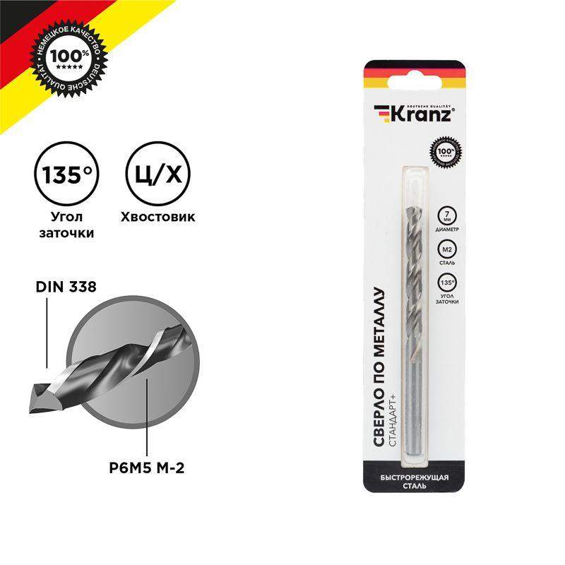 Сверло по металлу 7мм "Стандарт+" (P6M5 M-2) DIN 338 (блист.1шт) Kranz KR-91-0530