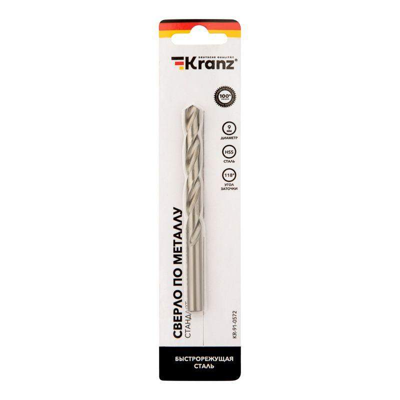 –Сверло по металлу 9.0мм HSS DIN 338 (уп.1шт) Kranz KR-91-0572