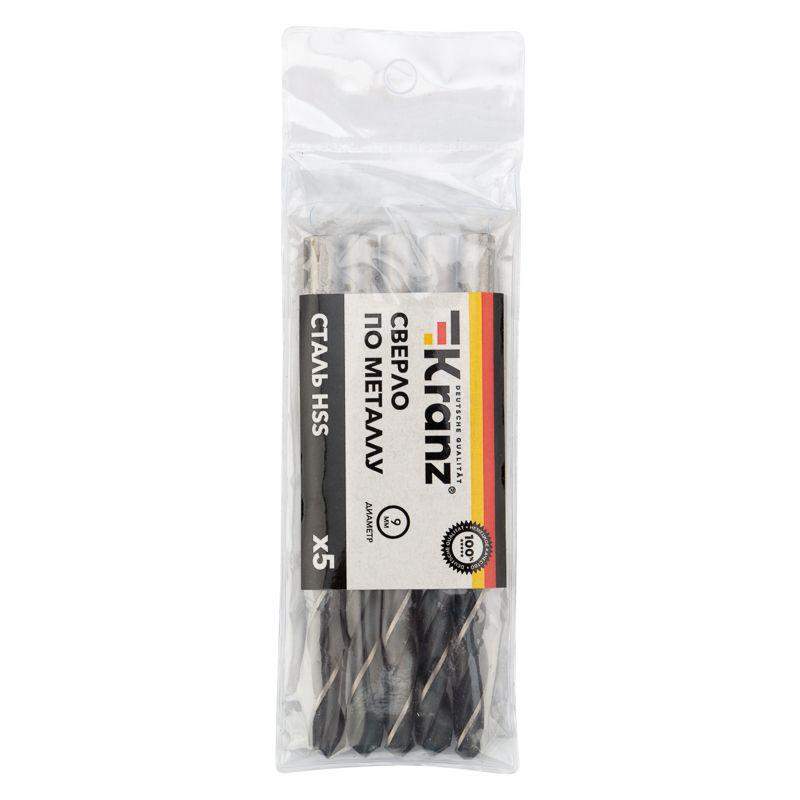 –Сверло по металлу 9.0мм HSS DIN 338 (уп.5шт) Kranz KR-91-0627
