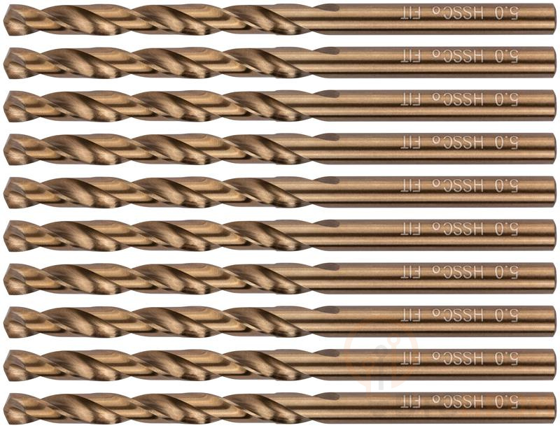 Сверло по металлу кобальтовое ‘’Профи’’ FIT HQ предназначено для сверления отверстий в углеродистых и легированных сталях, серых и ковких чугунах, цветных металлах и пластике. Сверло изготовлено из качественной быстрорежущей стали Р6М5К5. Добавка 5 % кобальта увеличивает износостойкость сверла и способствует высокой точности при работе. Форма спирали соответствует стандарту DIN 338 и способствует эффективному удалению стружки во время работы. Сверла имеют высший класс точности А1 и высверливают отверстия с высокоточным диаметром. Сверла изготавливаются методом вышлифовки профиля, что повышает плавность сверления и чистоту готовых отверстий.