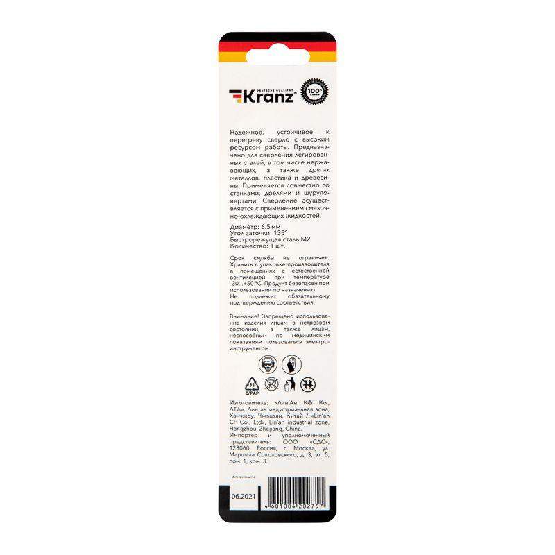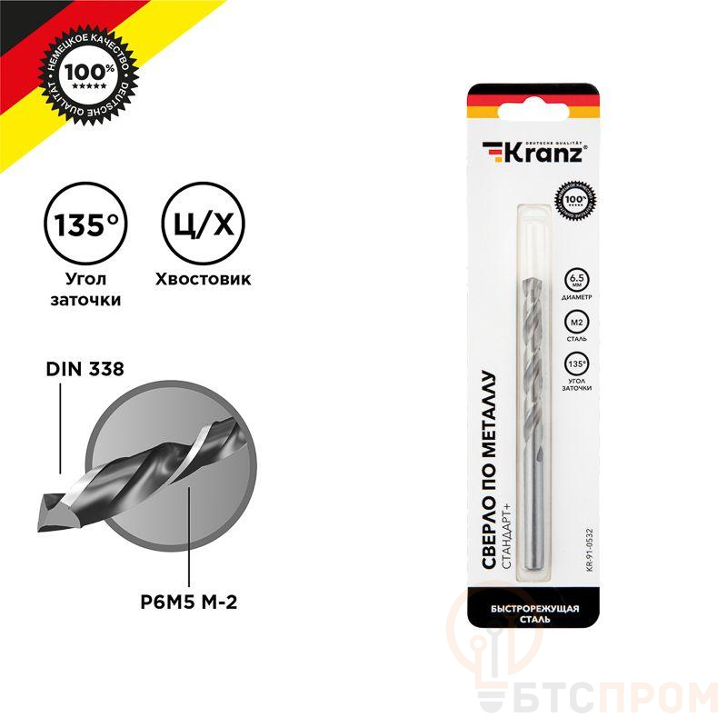 Сверло по металлу KRANZ изготовлено по стандарту DIN 338 и используется для сверления отверстий в таких материалах, как сталь, чугун, нержавеющая сталь, цветные металлы и пластик. Применяется совместно с дрелями, шуруповертами и станками с цилиндрическим типом крепления. Изделие выполнено из качественной стали М2 (Р6М5), что обеспечивает высокую производительность, а также препятствует быстрому перегреву во время использования. Режущая часть инструмента заточена под углом 135 градусов, что способствует более эффективному проникновению в материал, уменьшая износ сверла. Благодяря вышлифованному профилю сверло сохраняет точное положение во время сверления, благодаря чему создаваемые отверстия приобретают ровную и аккуратную форму. Ресурс использования инструмента заметно увеличивается при использовании смазочно-охлаждающих жидкостей.