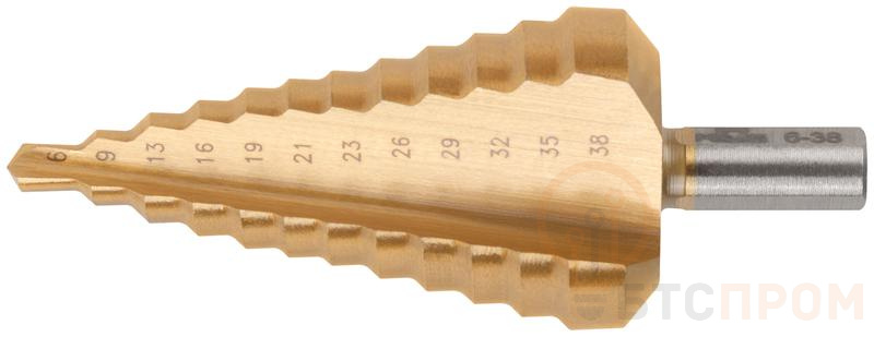 Сверло ступенчатое HSS по металлу 12 ступеней 6-9-13-16-19-21-23-26-29-32-35-38мм MOS 36386М фото в каталоге от BTSprom.by