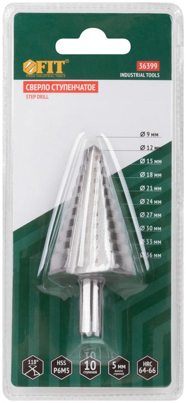 Сверло ступенчатое HSS (Р6М5) по металлу 9 ступеней 9-36мм FIT 36399 фото в каталоге от BTSprom.by