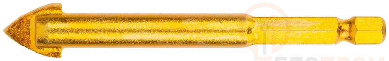 Сверло универсальное по твердым материалам КУРС предназначено для безударного сверления отверстий в керамической плитке, стекле, керамограните, бетоне и кирпиче. Сверление во всех указанных материалах должно быть аккуратным и непродолжительным и с применением водяного охлаждения. Режущая вставка изготовлена из мелкозернистого карбида вольфрама, что позволяет сверлить широкий спектр материалов. Алмазная заточка твердосплавной вставки обеспечивает высокую стойкость к износу. Сверла быстро засверливаются на гладких поверхностях. Шестигранный U-образный хвостовик под биту предотвращает проворачивание сверла в патроне, имеет специальную проточку для использования с быстросъемными адаптерами и удобен при работе с электроинструментом с шестигранным держателем.