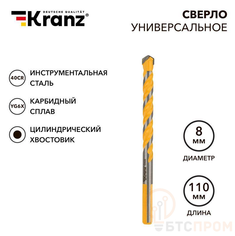 Сверло универсальное твердосплавное 8мм Kranz KR-91-0322 фото в каталоге от BTSprom.by