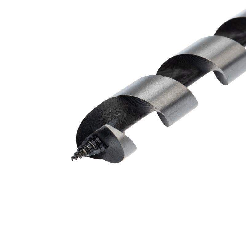 Винтовое сверло предназначено для сверления отверстий под нагели, дюбели. Используется при выполнении строительных, ремонтных и столярных работ. Сверло выполнено из закаленной инструментальной стали, что повышает износостойкость и долговечность инструмента. Центрирующее острие на конце рабочей части позволяет удобно засверливаться в материал и уменьшает осевую нагрузку, шнековая спираль Левиса обработана до зеркального блеска, из-за чего отверстия получаются гладкими, а стружка отводится более эффективно. Хвостовая часть, выполненная в виде шестигранника, надежно фиксирует сверло в патроне инструмента. Устанавливается на дрель или шуруповерт с высоким крутящим моментом.