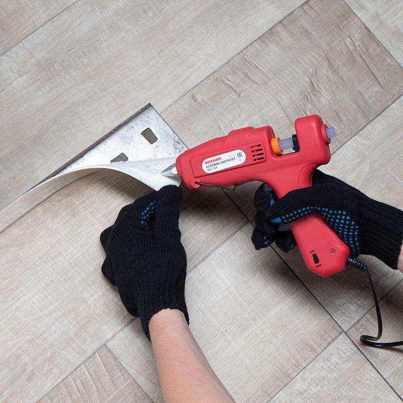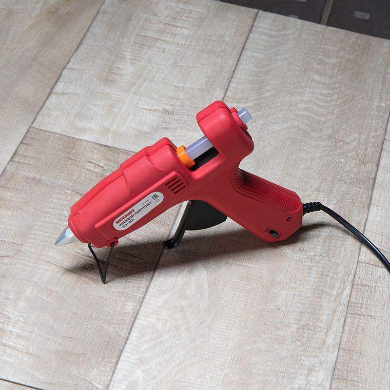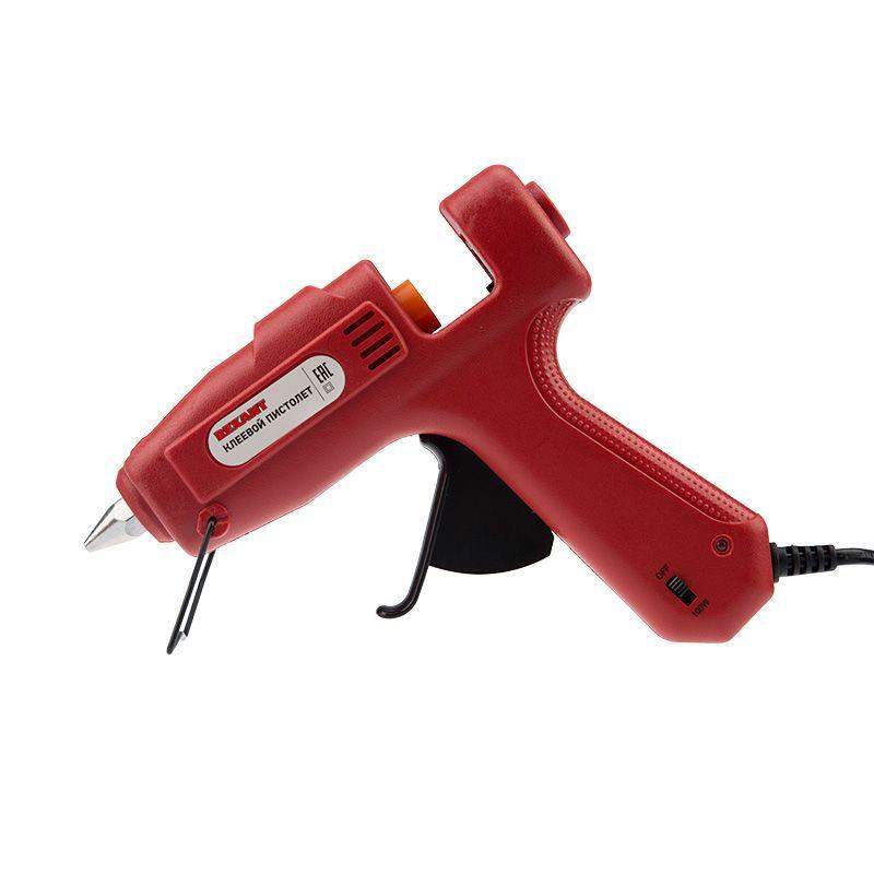 Клеевой пистолет предназначен склеивания поверхностей различных материалов, герметизации стыков и швов, фиксации проводов с помощью расплавленной клеевой массы. Используется в ремонте, декорировании, в изготовлении поделок и моделировании; будет полезен как на производстве, так и в быту. Корпус пистолета изготовлен из ударопрочной пластмассы, поэтому инструмент служит дольше, а металлическая скоба позволяет устанавливать пистолет в режиме ожидания. Сопло пистолета защищено клапаном от произвольного вытекания клея. На корпусе пистолета есть кнопка включения, благодаря которой пользователю удобнее контролировать использование пистолета. Также на корпусе есть индикатор, который показывает, что включен режим нагрева. Пистолет используется с клеевыми стрежнями диаметром 11 мм. Комплектация: клеевой пистолет (1 шт.), паспорт (1 шт.). ОСНОВНЫЕ ПРЕИМУЩЕСТВА 1. Быстрый нагрев. 2. Защита от произвольного вытекания клея из плавильной камеры. 3. Стабильная температура при постоянной работе. 4. Возможность управления одной рукой, легкий контроль плавления и подачи клея. 5. Индикация демонстрирует наличие питания (LED-лампочки красного цвета на корпусе).