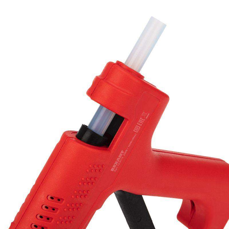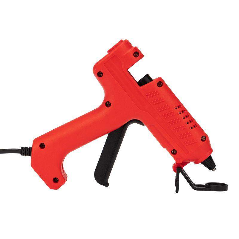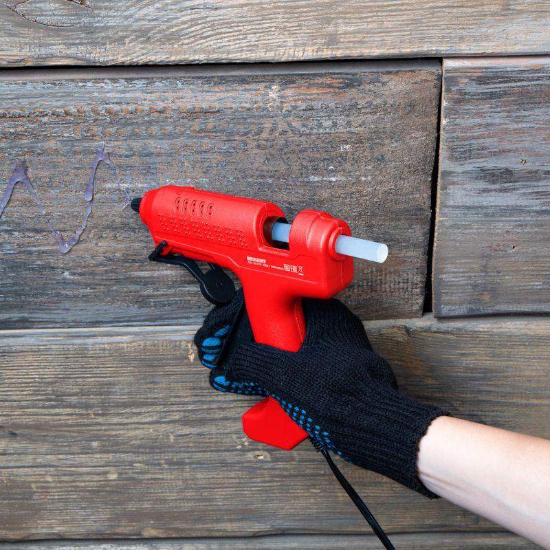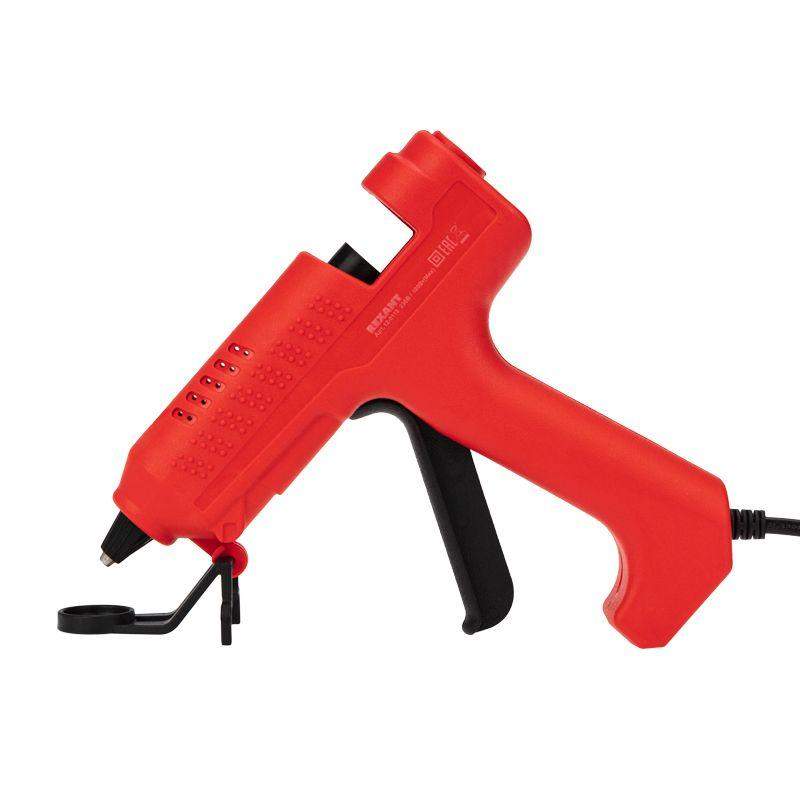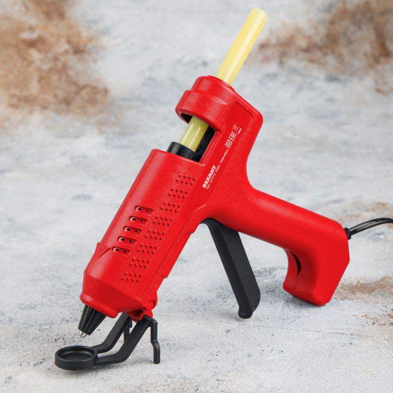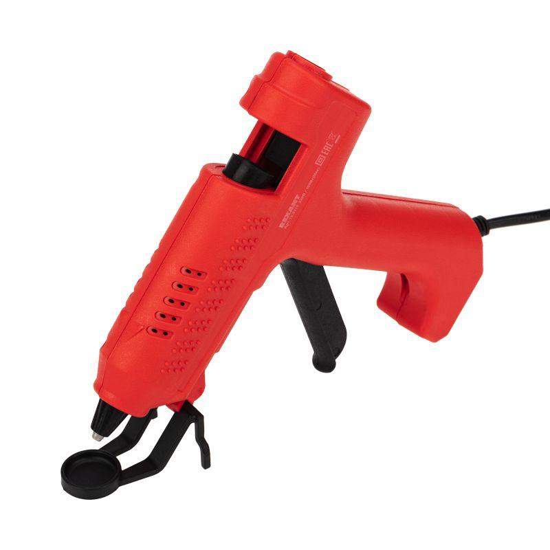 Клеевой пистолет предназначен склеивания поверхностей различных материалов, герметизации стыков и швов, фиксации проводов с помощью расплавленной клеевой массы. Используется в ремонте, декорировании, в изготовлении поделок и моделировании; будет полезен как на производстве, так и в быту. Корпус пистолета изготовлен из ударопрочной пластмассы, поэтому инструмент служит дольше, а специальная скоба с нишей для сбора капель клея позволяет устанавливать пистолет в режиме ожидания. Сопло пистолета защищено клапаном от произвольного вытекания клея и оснащено термостойким силиконовым протектором, минимизирующим риск ожогов при случайном контакте и защищающим рабочую зону от высокой температуры. Пистолет используется с клеевыми стрежнями диаметром 11 мм. Комплектация: клеевой пистолет (1 шт.), паспорт (1 шт.), клеевые стержни (2 шт.). ОСНОВНЫЕ ПРЕИМУЩЕСТВА 1. Быстрый нагрев. 2. Защита от произвольного вытекания клея из плавильной камеры. 3. Стабильная температура при постоянной работе. 4. Интерактивный керамический нагреватель, позволяющий экономить до 50 % электроэнергии. 5. Термостойкий силиконовый протектор сопла с длительным сроком службы. 6. Возможность управления одной рукой, легкий контроль плавления и подачи клея.