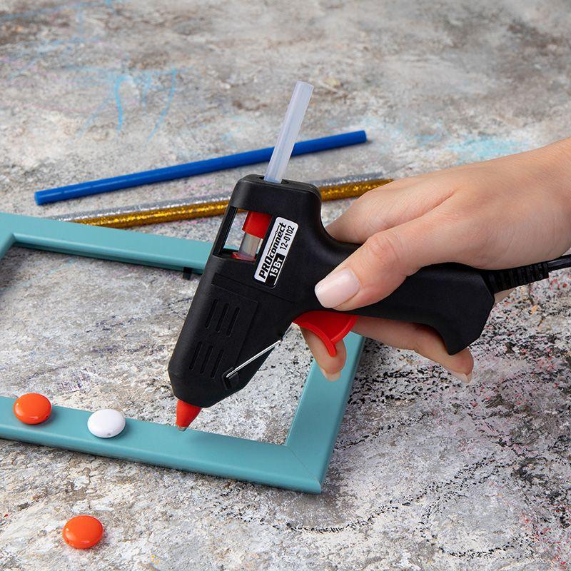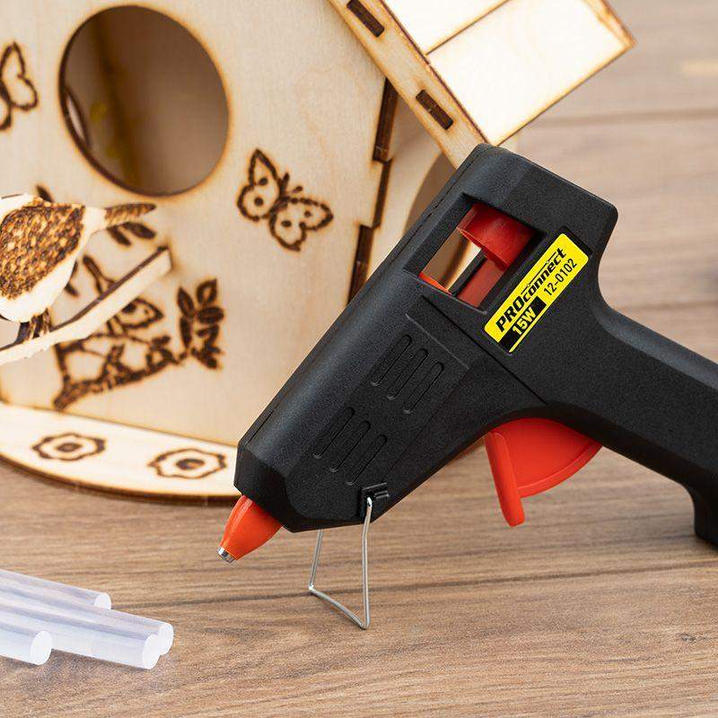 Клеевой пистолет предназначен склеивания поверхностей различных материалов, герметизации стыков и швов, фиксации проводов с помощью расплавленной клеевой массы. Используется в ремонте, декорировании, в изготовлении поделок и моделировании; будет полезен как на производстве, так и в быту. Корпус пистолета изготовлен из ударопрочной пластмассы, поэтому инструмент служит дольше, а металлическая скоба позволяет устанавливать пистолет в режиме ожидания. Сопло пистолета защищено клапаном от произвольного вытекания клея и оснащено термостойким силиконовым протектором, минимизирующим риск ожогов при случайном контакте и защищающим рабочую зону от высокой температуры. Пистолет используется с клеевыми стрежнями диаметром 7 мм. Комплектация: клеевой пистолет (1 шт.), паспорт (1 шт.). ОСНОВНЫЕ ПРЕИМУЩЕСТВА 1. Быстрый нагрев. 2. Защита от произвольного вытекания клея из плавильной камеры. 3. Стабильная температура при постоянной работе. 4. Термостойкий силиконовый протектор сопла с длительным сроком службы. 5. Возможность управления одной рукой, легкий контроль плавления и подачи клея.