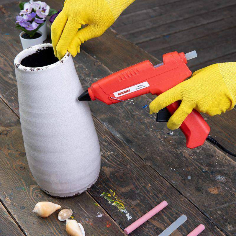 Пистолет клеевой 40Вт большой (блист.) REXANT 12-0108 представляет собой термоклеевой электрический ручной пистолет. Корпус изготовлен из ударопрочного пластика, стойкого к механическому воздействию и влиянию высоких температур. Конструкцией устройства предусмотрен клапан, который предохраняет вытекание клея при эксплуатации прибора. Принцип работы подразумевает расплавление клеевого стержня при включении прибора в сеть. Затем с помощью нажатия на курок клей выдавливается в количестве, зависящем от силы давления при нажатии. Применяется при соединении деревянных, бумажных и пластмассовых поверхностей. Мощность инструмента: 40 Вт. Упакован в блистере.