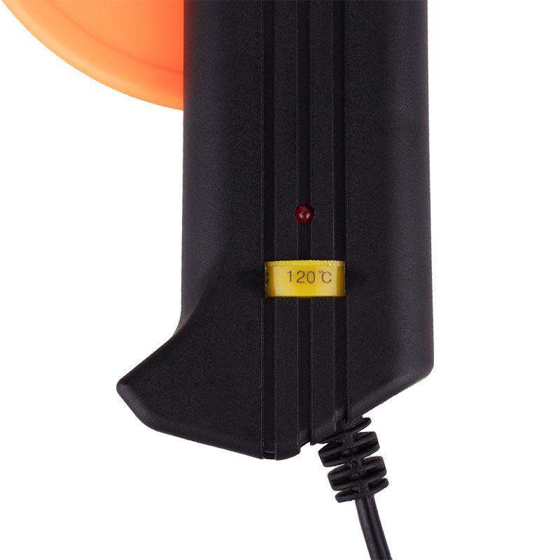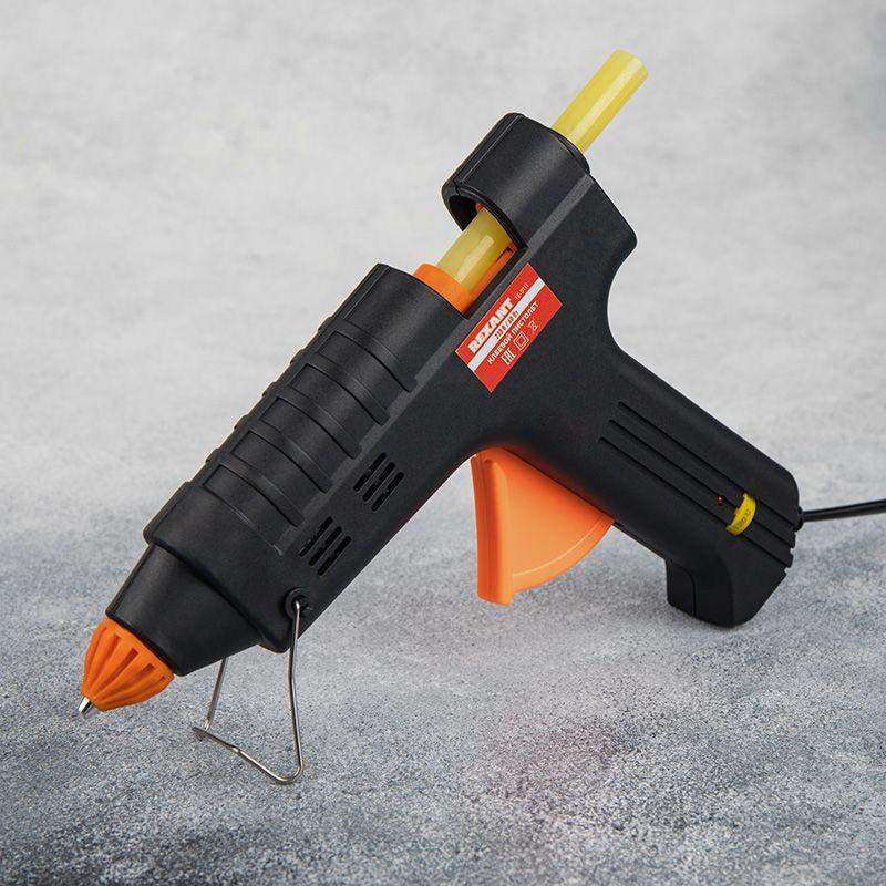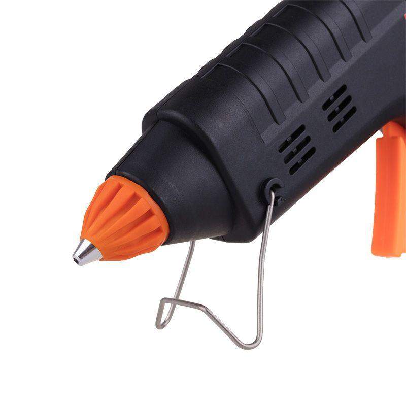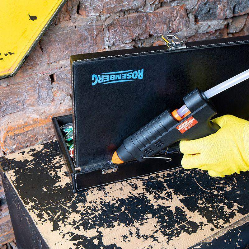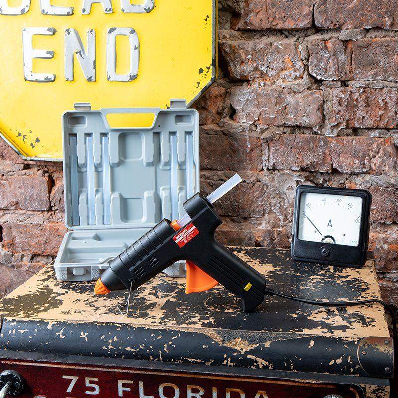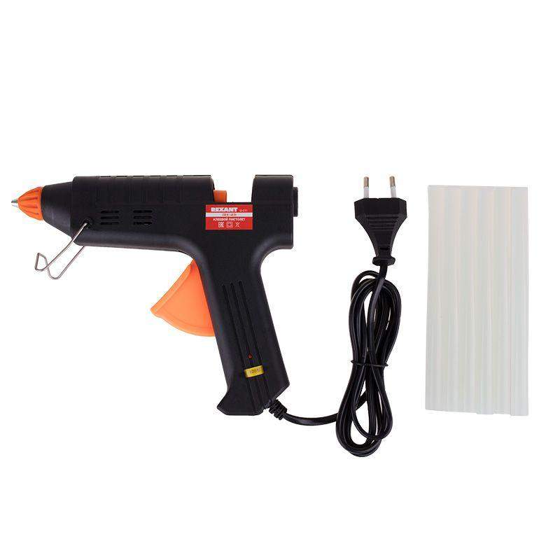 Клеевой пистолет предназначен склеивания поверхностей различных материалов, герметизации стыков и швов, фиксации проводов с помощью расплавленной клеевой массы. Используется в ремонте, декорировании, в изготовлении поделок и моделировании; будет полезен как на производстве, так и в быту. Корпус пистолета изготовлен из ударопрочной пластмассы, поэтому инструмент служит дольше, а металлическая скоба позволяет устанавливать пистолет в режиме ожидания. Сопло пистолета защищено клапаном от произвольного вытекания клея и оснащено термостойким силиконовым протектором, минимизирующим риск ожогов при случайном контакте и защищающим рабочую зону от высокой температуры. На корпусе пистолета есть регулятор температуры, который позволяет настраивать температуру плавления клеевого стрежня в диапазоне 120-240 градусов. Пистолет используется с клеевыми стрежнями диаметром 11 мм. Комплектация: клеевой пистолет (1 шт.), паспорт (1 шт.), клеевые стержни (6 шт.). В комплект также входит удобный пластиковый кейс для хранения пистолета и клеевых стержней. ОСНОВНЫЕ ПРЕИМУЩЕСТВА 1. Быстрый нагрев. 2. Защита от произвольного вытекания клея из плавильной камеры. 3. Стабильная температура при постоянной работе. 4. Термостойкий силиконовый протектор сопла с длительным сроком службы. 5. Возможность управления одной рукой, легкий контроль плавления и подачи клея.