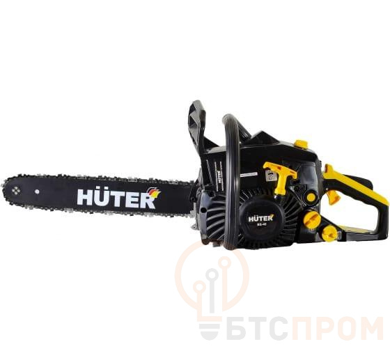 Цепная пила HUTER BS-40 поможет быстро и безопасно срубить небольшое дерево, спилить ветки, заготовить дрова. Агрегат работает от двухтактного бензинового двигателя объемом 40 см? и мощностью 2,6 л.с. Емкость топливного бака 310 мл. Модель имеет компактную шину длиной 40 см, толщина звена 1,3 мм, шаг цепи 3/8". Регулировка механизма натяжения цепи упрощена за счет бокового расположения на корпусе. Металлический маслонасос автоматически подает смазку, которая облегчает скольжение цепи, защищает металлические детали от перегрева, увеличивает срок службы агрегата. Емкость бака для смазки 210 мл. Пила имеет плавный спуск и блокировку курка для защиты от случайного нажатия. Наличие щитка предотвращает риск травмирования в случае соскока или разрыва цепи. Модель оснащена резиновыми амортизаторами, снижающими вибрацию, что позволяет пользоваться устройством длительное время. Благодаря системе «Легкий старт», двигатель можно завести без особых усилий. Надежная, безопасная и простая в управлении бензопила HUTER BS-40 пригодится в любом загородном хозяйстве, обеспечит простоту продольной и поперечной распиловки древесины, заготовки дров.