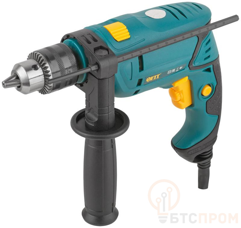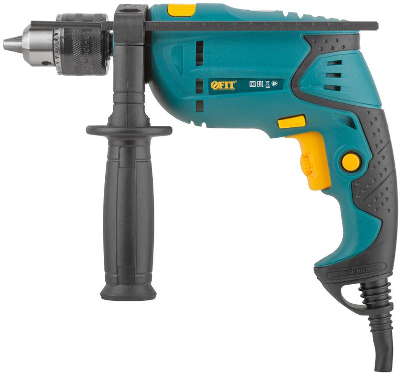 Дрель ударная FIT IT предназначена для закручивания, выкручивания шурупов и винтов; сверления отверстий в древесине, металле, пластмассе, а также в очень твердых материалах (бетон, камень). Может работать в ударном и безударном режиме. Ограничитель скорости вращения позволяет подобрать необходимую максимальную скорость при обработке различных материалов. Функция реверса позволяет изменять направление вращения. Дополнительная рукоятка способствует лучшему удержанию инструмента во время работы. Глубиномер позволяет ограничивать глубину сверления. Ключевой патрон дает возможность устанавливать сменный инструмент диаметром 1,5–13 мм. Резиновые вставки на корпусе предотвращают проскальзывание инструмента во время работы.