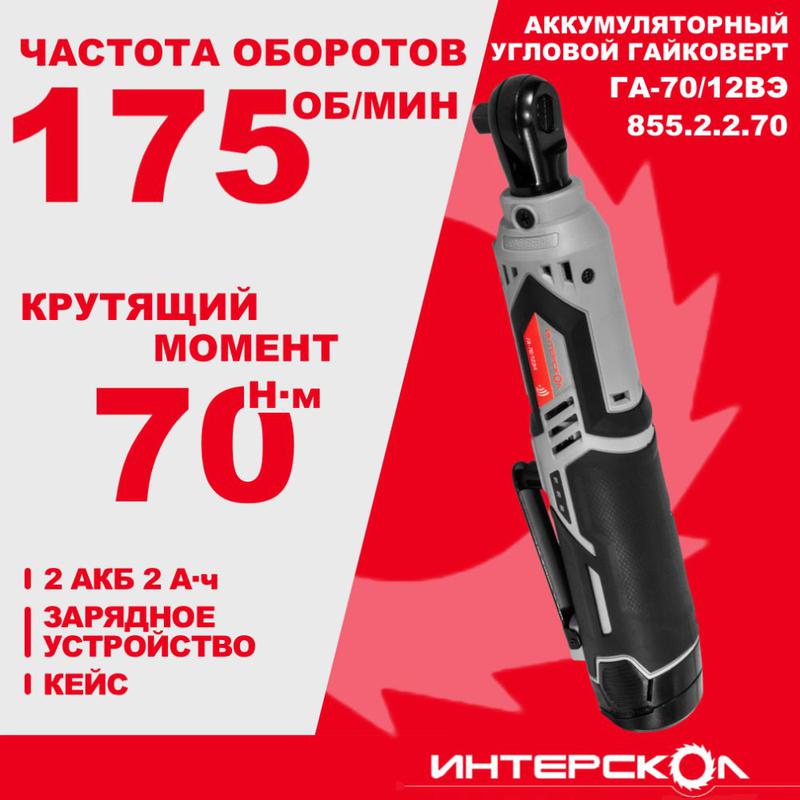 Гайковерт аккумуляторный бесщеточн.ГА-70/12ВЭ (Li-ion кейс 2 аккум. 20 А.ч ЗУ) ИНТЕРСКОЛ 855.2.2.70 фото в каталоге от BTSprom.by