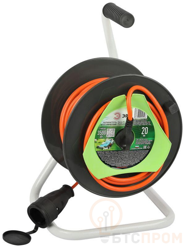 Удлинитель силовой на пластиковой катушке ЭРА RP-1e-3x1.5-20m с заземлением, 1 розетка, провод ПВС 3х1,5м2, 20 м. Мощность 16А/3500Вт. Степень защиты IP44. Используется для работы на строительных площадках или дачных участках. Удобен при работе с приборами, находящимися удаленно от стационарной розетки. Например, газонокосилки, электрические, пилы, триммеры или электродрели. Провод в удлинителях Эра сделан из 100% меди, что делает его абсолютно пожаробезопасным. Рама удлинителя сделана из высокопрочной стали, а пластиковой корпус выполнен с применением негорючих добавок.
