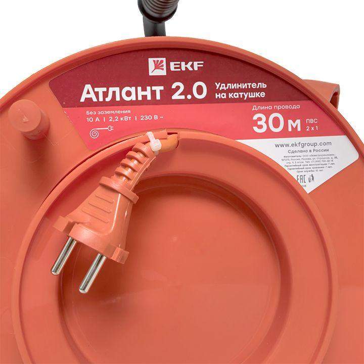 Удлинитель на катушке 1х30м без заземл. 10А IP20 Атлант 2.0 2.2кВт ПВС 2х1 PROxima EKF UKA02-10-210-1-30