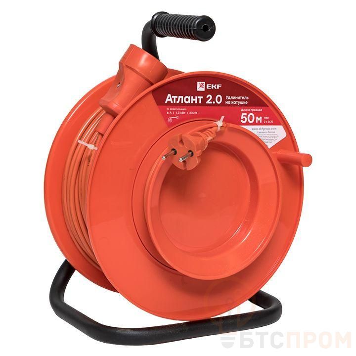 Удлинитель на катушке 1х50м без заземл. 6А IP20 Атлант 2.0 1.3кВт ПВС 2х0.75 PROxima EKF UKA02-06-275-1-50