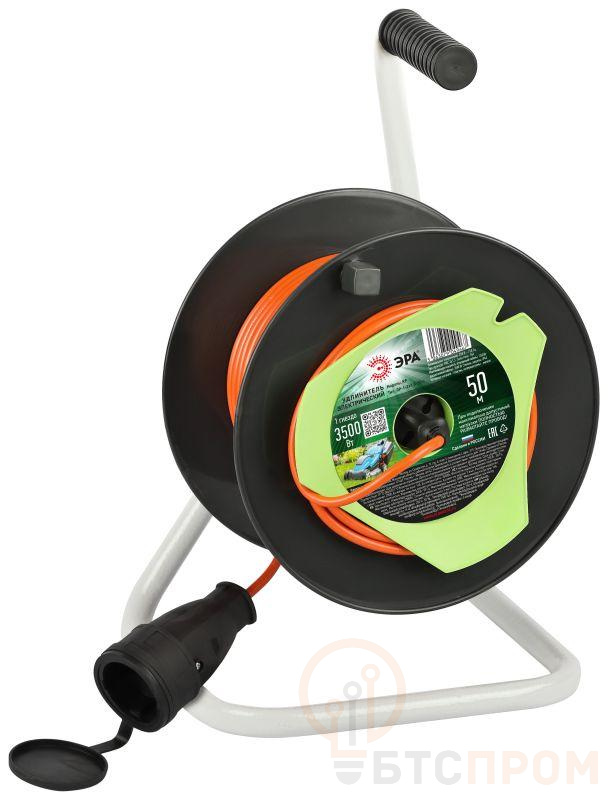 Удлинитель силовой на пластиковой катушке ЭРА RP-1-2x1.5-50m без заземления, 1 розетка, провод ПВС 2х1,5м2, 50 м. Мощность 16А/3500Вт. Степень защиты IP44. Используется для работы на строительных площадках или дачных участках. Удобен при работе с приборами, находящимися удаленно от стационарной розетки. Например, газонокосилки, электрические, пилы, триммеры или электродрели. Провод в удлинителях Эра сделан из 100% меди, что делает его абсолютно пожаробезопасным. Рама удлинителя сделана из высокопрочной стали, а пластиковой корпус выполнен с применением негорючих добавок.
