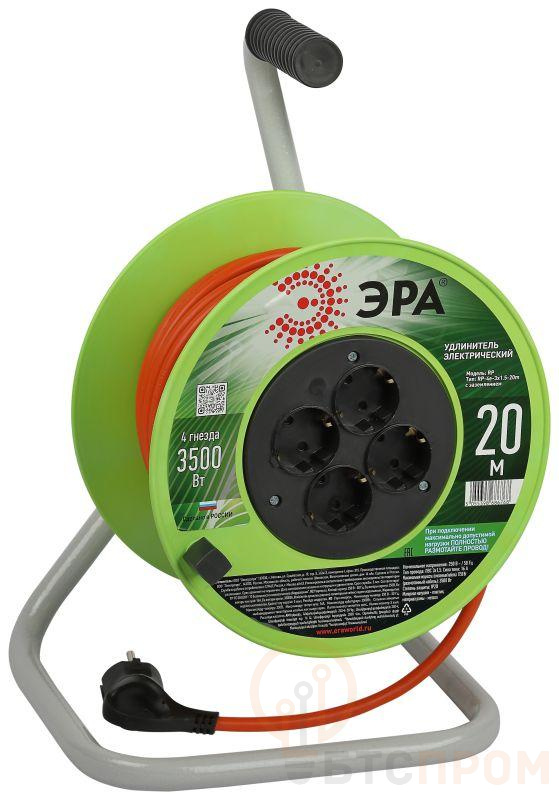 Удлинитель силовой на пластиковой катушке ЭРА RP-4e-3x1.5-20m с заземлением, 4 розетки, провод ПВС 3х1,5кв.м, 20 м. Мощность 16А/3500Вт. Используется для работы на строительных площадках или дачных участках. Удобен при работе с приборами, находящимися удаленно от стационарной розетки. Например, газонокосилки, электрические, пилы, триммеры или электродрели. Провод в удлинителях Эра сделан из 100% меди, что делает его абсолютно пожаробезопасным. Рама удлинителя сделана из высокопрочной стали, а пластиковой корпус выполнен с применением негорючих добавок.