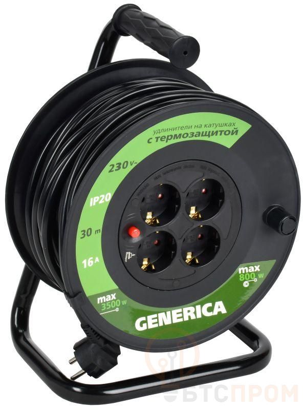 Удлинитель на катушке 4х30м 16А IP20 УК30 2P+PE 3х1.5 термозащита GENERICA WKP20-16-04-30-G