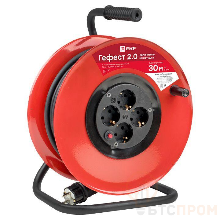 Удлинитель на катушке 4х30м с заземл. 16А IP20 Гефест 2.0 3.5кВт КГ 3х1.5 с предохранителем PROxima EKF UKG02-16-R315-4-30