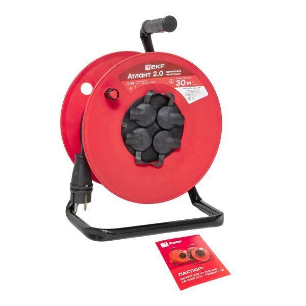 Удлинитель на катушке 4х30м с заземл. 16А IP44 Атлант 2.0 3.5кВт КГ 3х1.5 PROxima EKF UKA02-16-315R-4-30-IP44
