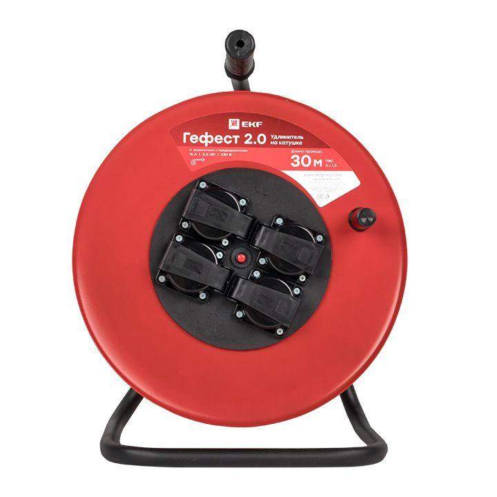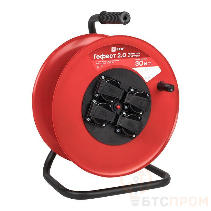 Удлинитель на катушке 4х30м с заземл. 16А IP44 Гефест 2.0 3.5кВт ПВС 3х1.5 с предохранителем PROxima EKF UKA02-16-R315-4-30-IP44