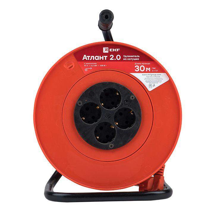 Удлинитель на катушке 4х40м с заземл. 10А IP20 Атлант 2.0 2.2кВт ПВС 3х1 PROxima EKF UKA02-10-310-4-40