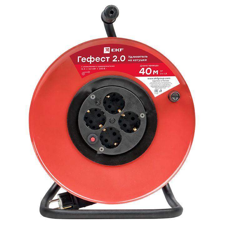 Удлинитель на катушке 4х40м с заземл. 16А IP20 Гефест 2.0 3.5кВт КГ 3х1.5 с предохранителем PROxima EKF UKG02-16-R315-4-40