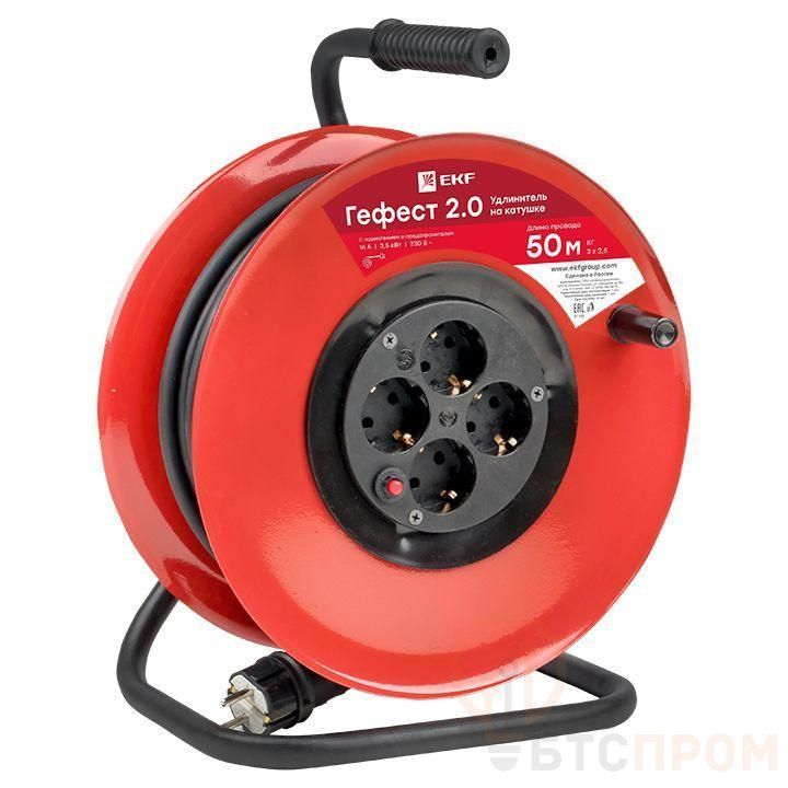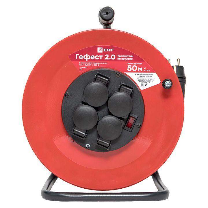 Удлинитель на катушке 4х50м с заземл. 16А IP44 Гефест 2.0 3.5кВт КГ 3х2.5 с предохранителем PROxima EKF UKG02-16-R325-4-50-IP44