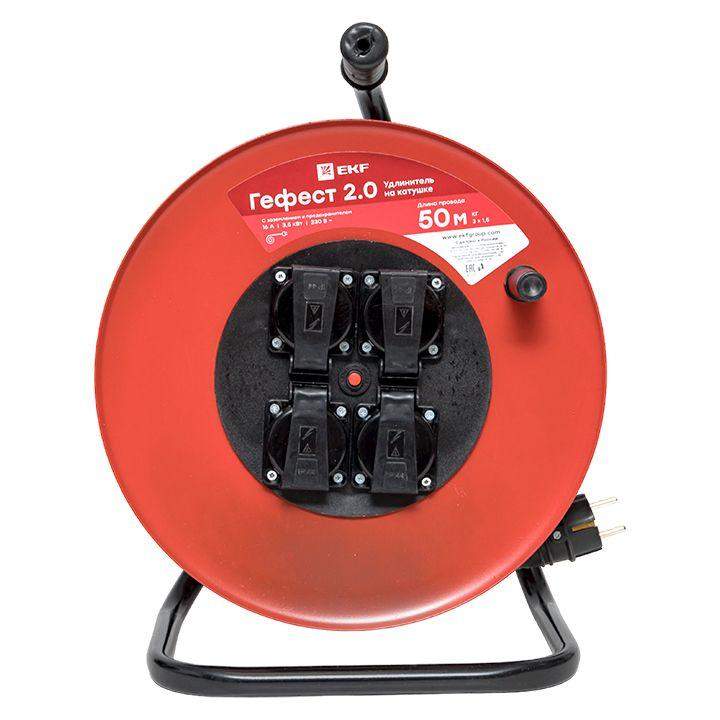 Удлинитель на катушке 4х50м с заземл. 16А IP44 Гефест 2.0 3.5кВт ПВС 3х1.5 с предохранителем PROxima EKF UKA02-16-R315-4-50-IP44
