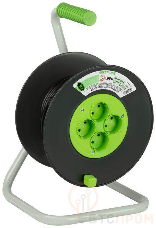 Удлинитель силовой ЭРА GREEN LINE на пластиковой катушке KAT-2x0.75-20m, 4 розетки без заземления. Провод ПВС 2х0,75мм2, 20м. Мощность 6А/1300Вт. Используется для работы на строительных площадках или дачных участках. Удобен при работе с приборами, находящимися удаленно от стационарной розетки. Например, газонокосилки, электрические, пилы, триммеры или электродрели. Рама катушки сделана из высокопрочной стали, а пластиковой корпус катушки выполнен с применением негорючих добавок.