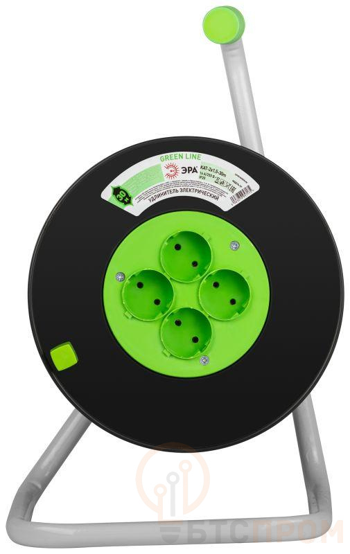 Удлинитель силовой ЭРА GREEN LINE на пластиковой катушке KAT-2x1.5-30m, 4 розетки без заземления. Провод ПВС 2х1,5мм2, 30м. Мощность 16А/3500Вт. Используется для работы на строительных площадках или дачных участках. Удобен при работе с приборами, находящимися удаленно от стационарной розетки. Например, газонокосилки, электрические, пилы, триммеры или электродрели. Рама катушки сделана из высокопрочной стали, а пластиковой корпус катушки выполнен с применением негорючих добавок.