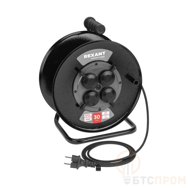 Силовой удлинитель REXANT предназначен для подключения электрических приборов и электроинструментов. Незаменим в случае, когда стандартной длины шнура недостаточно для питания от стационарных розеток. Устройство оснащено четырьмя гнездами, что позволяет подключить несколько устройств. С автоматической защитой от перегрузки. Универсальная электрическая вилка на конце провода обеспечит подключение к розеткам российского и европейского стандарта. Для удобства транспортировки и хранения шнур поставляется на металлической катушке. Удлинитель с заземлением длиной 30 метров позволяет удобно разместить приборы на нужном расстоянии от розетки, а высококачественные материалы и конструкция обеспечивают безопасность и надежность работы. ВНИМАНИЕ! Перед включением максимальной нагрузки необходимо полностью размотать шнур.