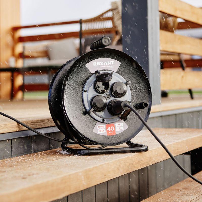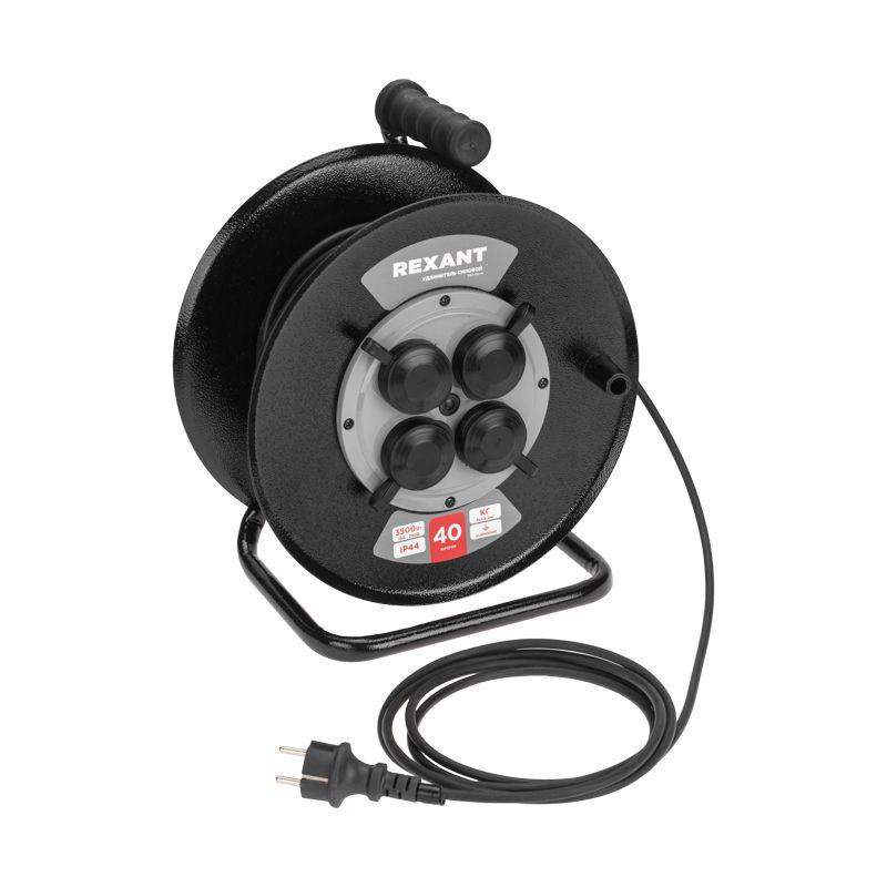 Силовой удлинитель REXANT предназначен для подключения электрических приборов и электроинструментов. Незаменим в случае, когда стандартной длины шнура недостаточно для питания от стационарных розеток. Устройство оснащено четырьмя гнездами, что позволяет подключить несколько устройств. С автоматической защитой от перегрузки. Универсальная электрическая вилка на конце провода обеспечит подключение к розеткам российского и европейского стандарта. Для удобства транспортировки и хранения шнур поставляется на металлической катушке. Удлинитель с заземлением длиной 40 метров позволяет удобно разместить приборы на нужном расстоянии от розетки, а высококачественные материалы и конструкция обеспечивают безопасность и надежность работы. ВНИМАНИЕ! Перед включением максимальной нагрузки необходимо полностью размотать шнур.
