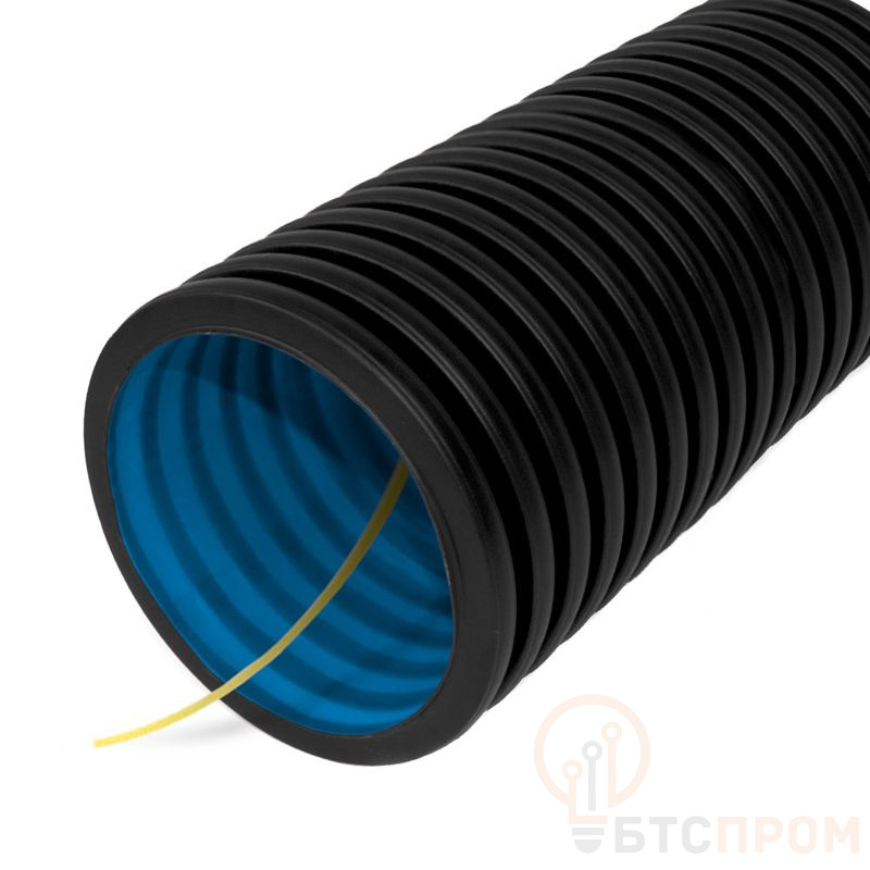 Труба гофрированная двустенная ПНД гибкая d40мм с протяжкой SN29 450 стойкая к УФ черн. (уп.50м) Промрукав PR15.0293