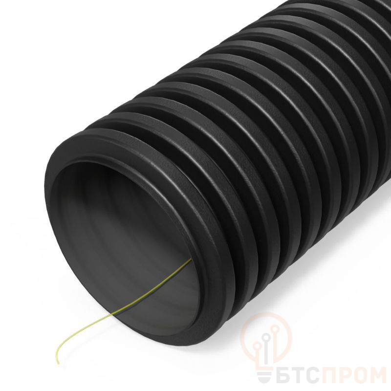 Конструкция трубы включает две стенки: гладкую внутреннюю, облегчающую протяжку кабелей, и наружную гофрированную, обеспечивающую высокую кольцевую жесткость (SN26) и стойкость к деформациям под нагрузкой до 450 кПа. Благодаря черному цвету и устойчивости к ультрафиолетовому излучению, труба может использоваться для наружного монтажа без дополнительной защиты.