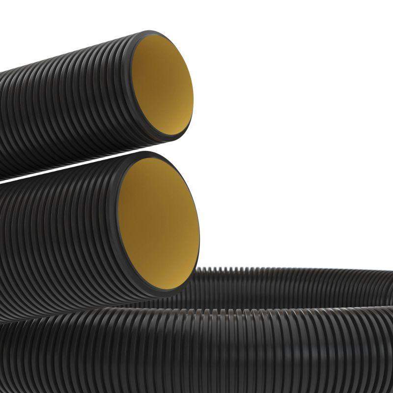 Двустенные гибкие электротехнические трубы могут использоваться как для прокладки кабеля, так и для организации ливневой организации. В первом случае удобнее использовать трубы с протяжкой - она позволяет легко проложить кабель во внутреннем пространстве трубы. Труба имеет высокую кольцевую жесткость. Диаметр 63 мм, поставляется бухтами по 50 метров. Материал - ПНД.