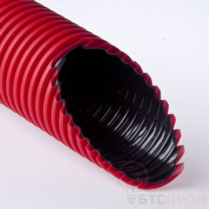 Труба гофрированная двустенная ПНД/ПВД d50/39.5мм с протяжкой с муфтой и 2 уплотн. кольцами красн. (уп.100м) Ruvinil Т2-КЛ0-050К