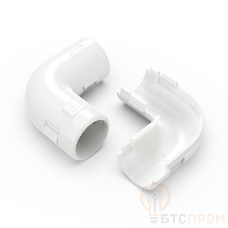 Соединитель угловой 90град. разборный d16мм бел. Промрукав PR.07516б фото в каталоге от BTSprom.by
