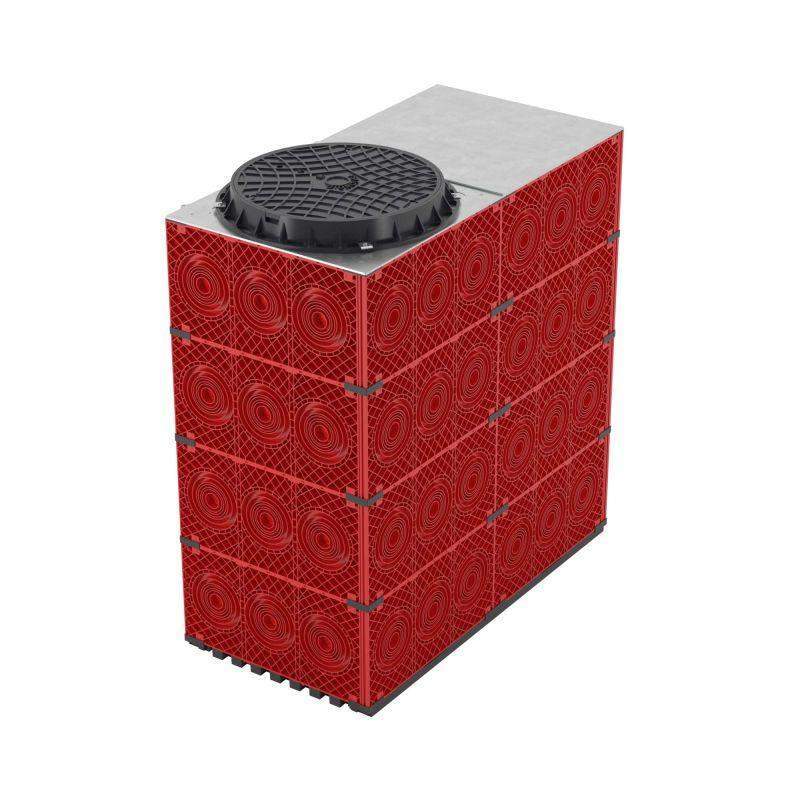 Модульный кабельный колодец применяется для строительства кабельной канализации. Колодец состоит из разборного дна, собранных из отдельных модулей стенок. Верхняя часть колодца состоит из двух частей. Первая часть – комплект из пластикового люка, усиленного профилем и горячеоцинкованной металлической рамы 750х750мм. Вторая часть – металлическая горячеоцинкованная заглушка 750х750мм. Габариты: 1500х750х1500 Монтаж труб: предусмотрено 72 выбивных отверстия с фиксацией, для ввода двустенных гофрированных труб диаметром 50, 75, 90, 110, 125, 160 и 200 мм Нагрузка на крышку колодца – А15 по ГОСТ 3634-99 (EN124) Цвет: красный (боковые модули); черный (крышка, фиксаторы, дно) Дно: перфорированное