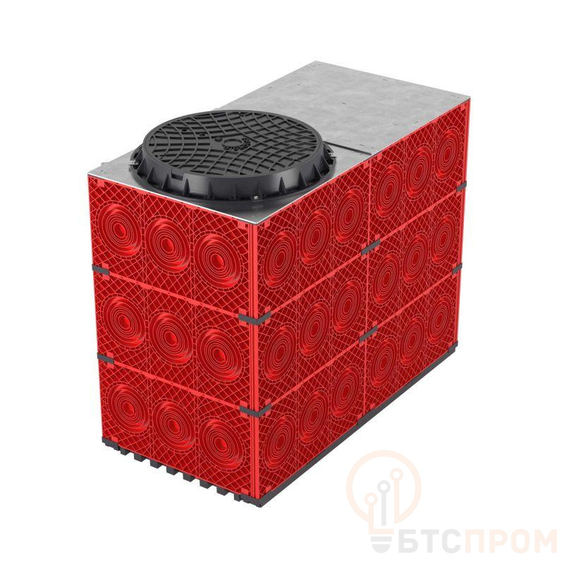 Модульный кабельный колодец применяется для строительства кабельной канализации. Колодец состоит из разборного дна, собранных из отдельных модулей стенок. Верхняя часть колодца состоит из двух частей. Первая часть – комплект из пластикового люка, усиленного профилем и горячеоцинкованной металлической рамы 750х750мм. Вторая часть – металлическая горячеоцинкованная заглушка 750х750мм. Габариты: 1500х750х1125 Монтаж труб: предусмотрено 54 выбивных отверстия с фиксацией, для ввода двустенных гофрированных труб диаметром 50, 75, 90, 110, 125, 160 и 200 мм Нагрузка на крышку колодца – А15 по ГОСТ 3634-99 (EN124) Цвет: красный (боковые модули); черный (крышка, фиксаторы, дно) Дно: перфорированное