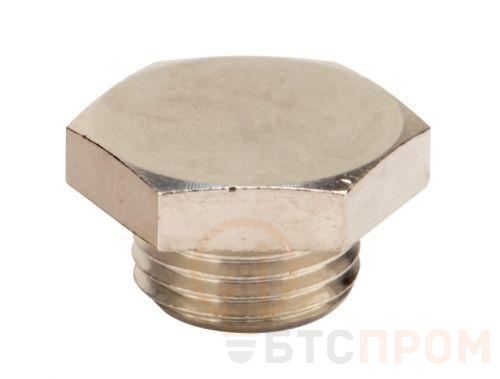 Заглушка используется для закрытия концевых участков труб с метрической резьбой М16х1,5. Если в данный момент труба не используется, заглушка закрывает свободный конец, предотвращая попадание в трубу мусора и обеспечивая эстетичный внешний вид. Материал - никелированная латунь.